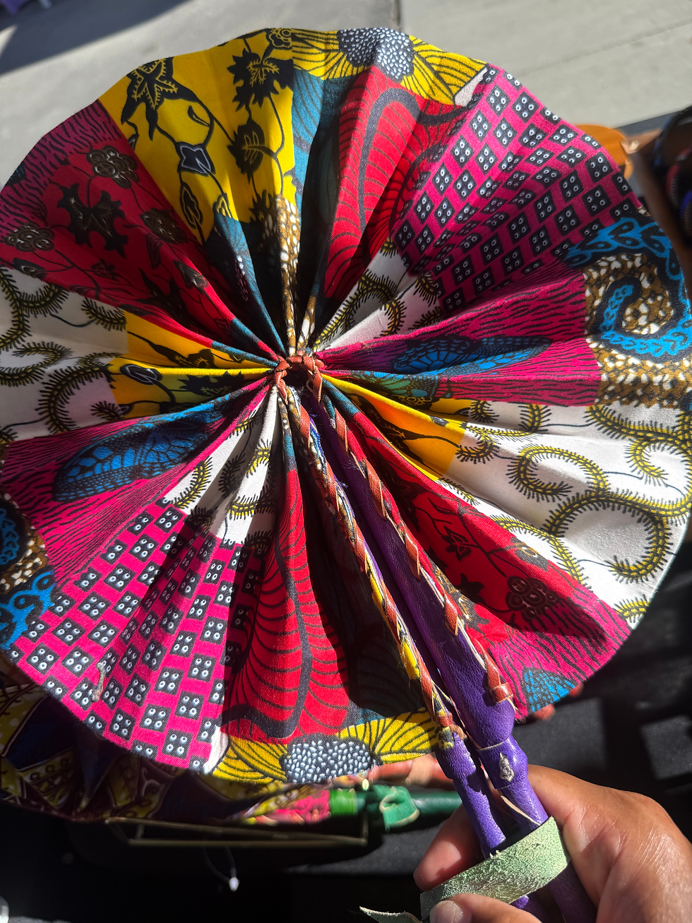 Leather African Print Folding Fans | Burkina Handwoven Fans